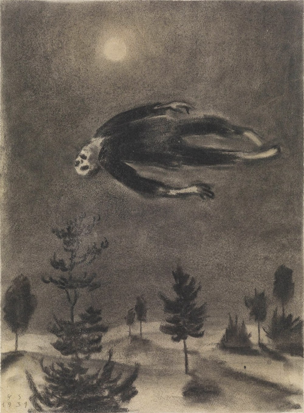 Acompaña la entrada la ilustración Gespenst über den Bäumen (1931), de Franz Sedlacek.