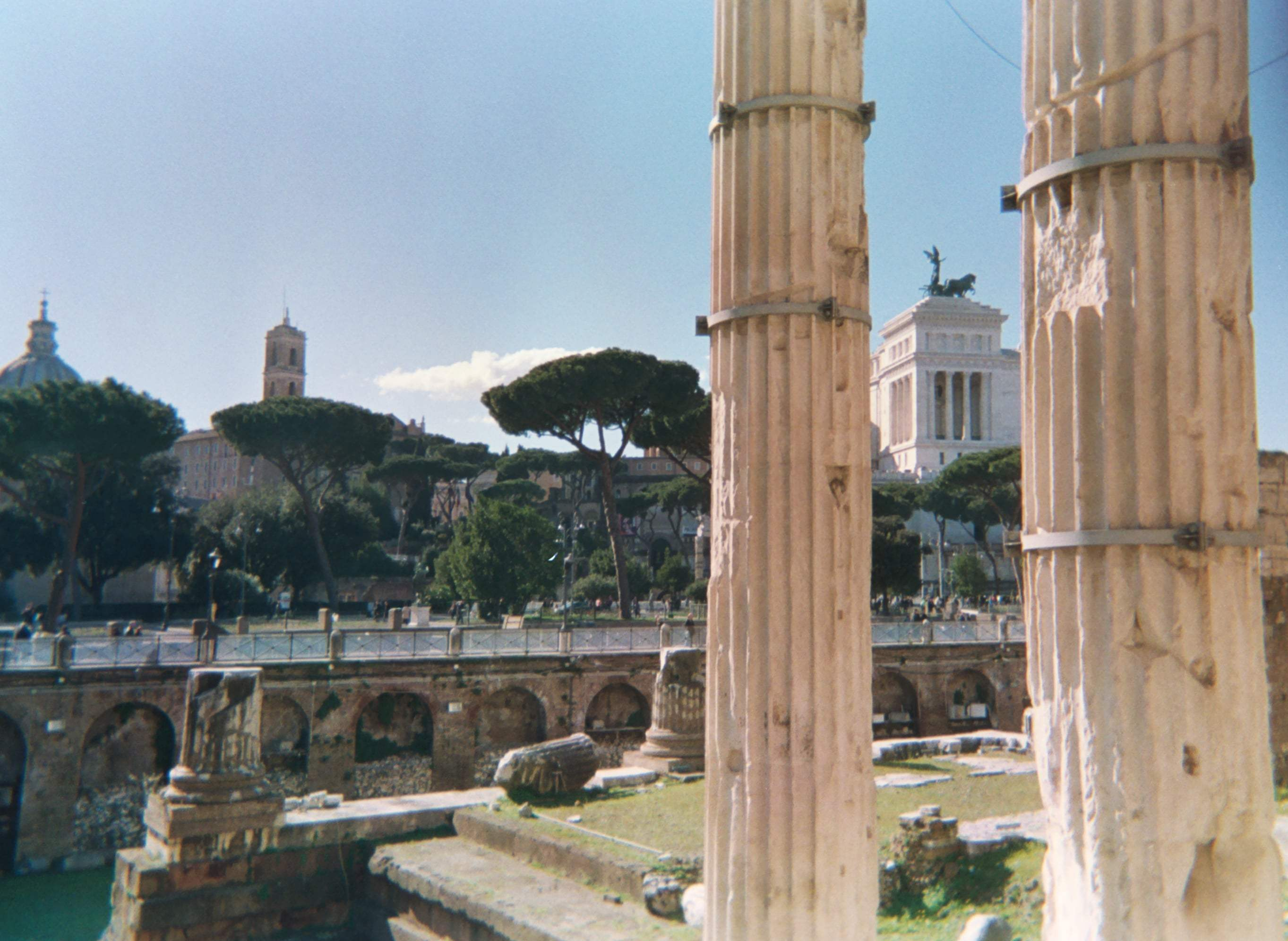 Un día Camila me compró una Kodak descartable, de esas que venden en los kioscos y yo fui feliz. El carácter mismo de la maquinita sacaba toda aura, toda responsabilidad: yo me ponía ahí y disparaba, sin que me importara nada, sin pensar en nada, como un auténtico amateur (que significa amante). Cuando los resultaron vieron la luz, mi cualidad de aficionado se hizo evidente: la mitad de las fotos están quemadas, o salieron muy oscuras o tienen dedos míos que las arruinan. En fin: también están ahí, como testigos o pruebas de algo. Al final, los lugares son tan hermosos que las justifican.